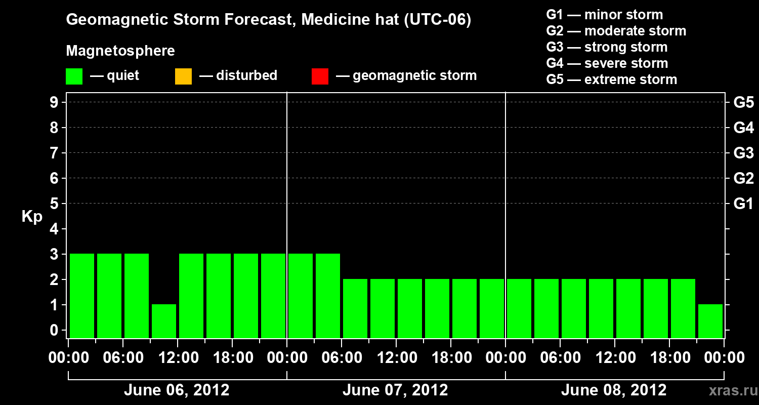 Geomagnetic storm forecast in Medicine hat for Jun 06, 2012