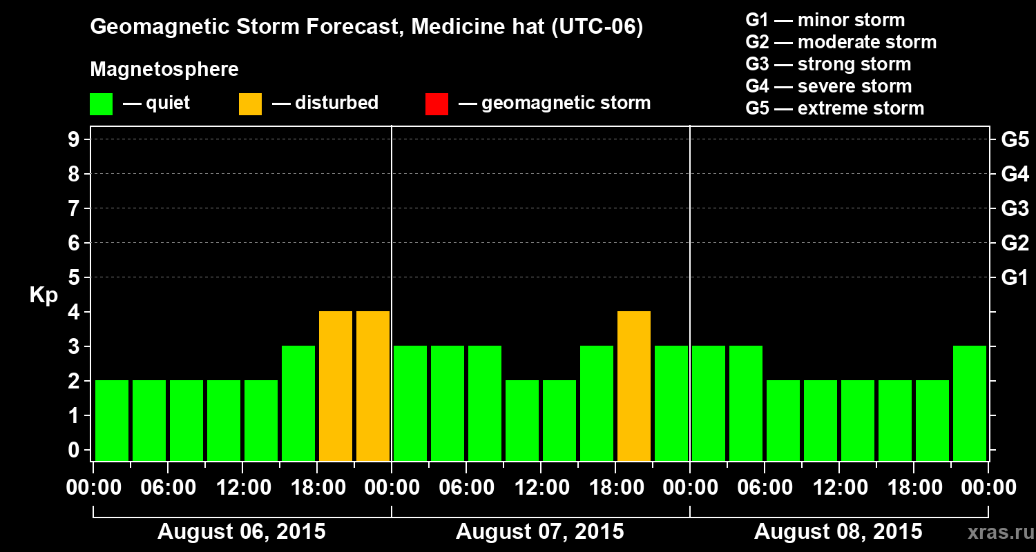 Geomagnetic storm forecast in Medicine hat for Aug 06, 2015