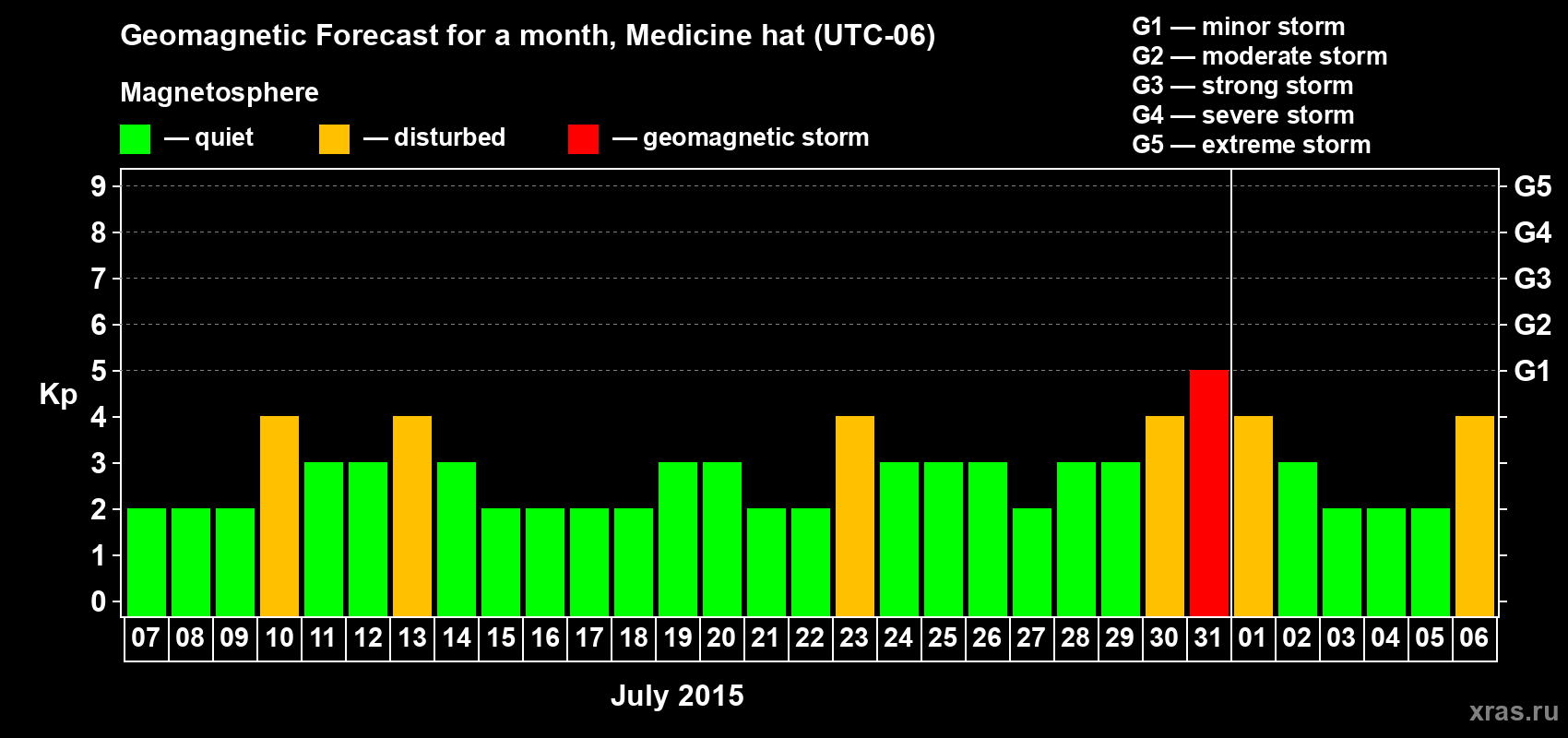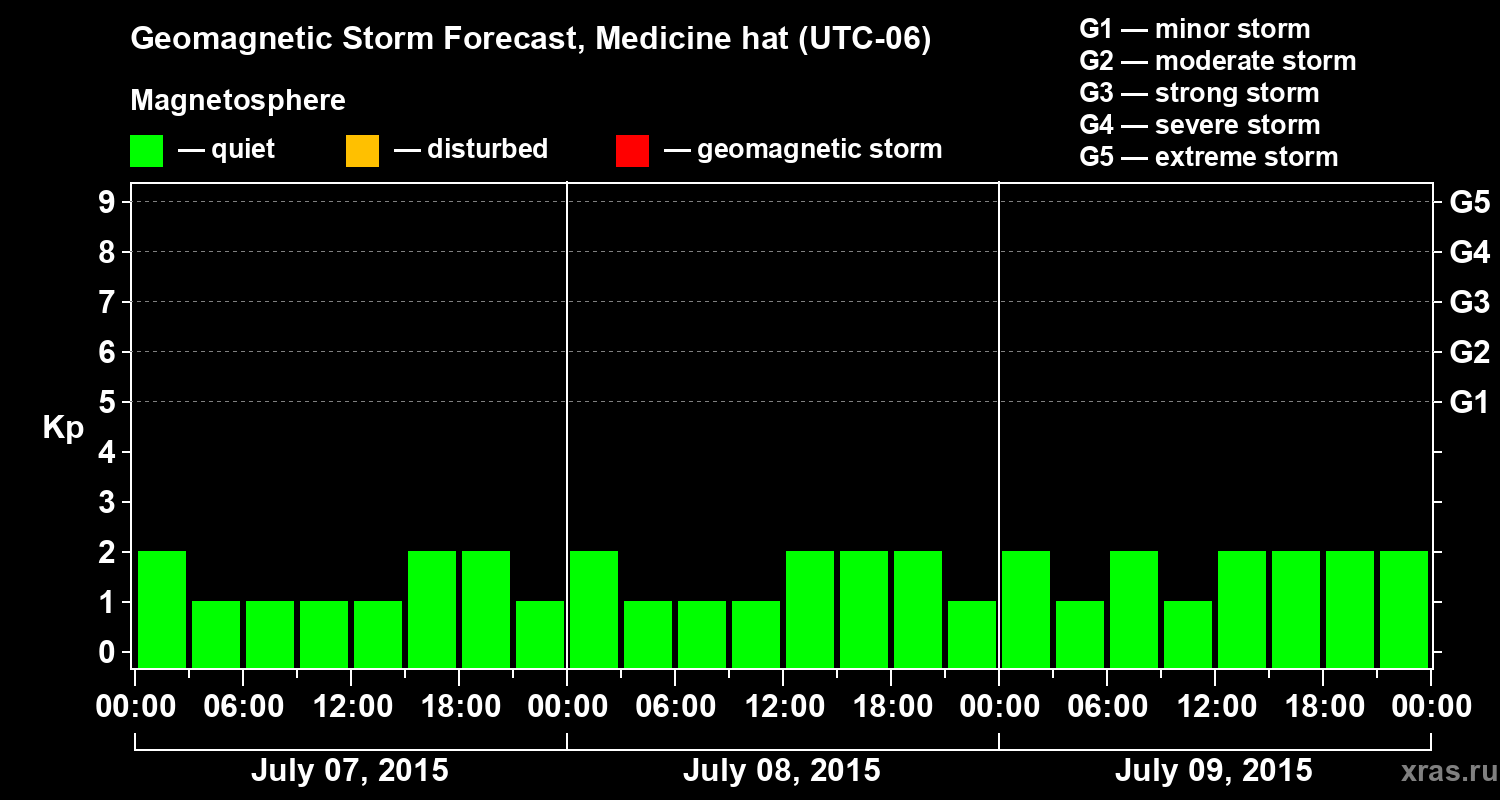 Geomagnetic storm forecast in Medicine hat for Jul 07, 2015