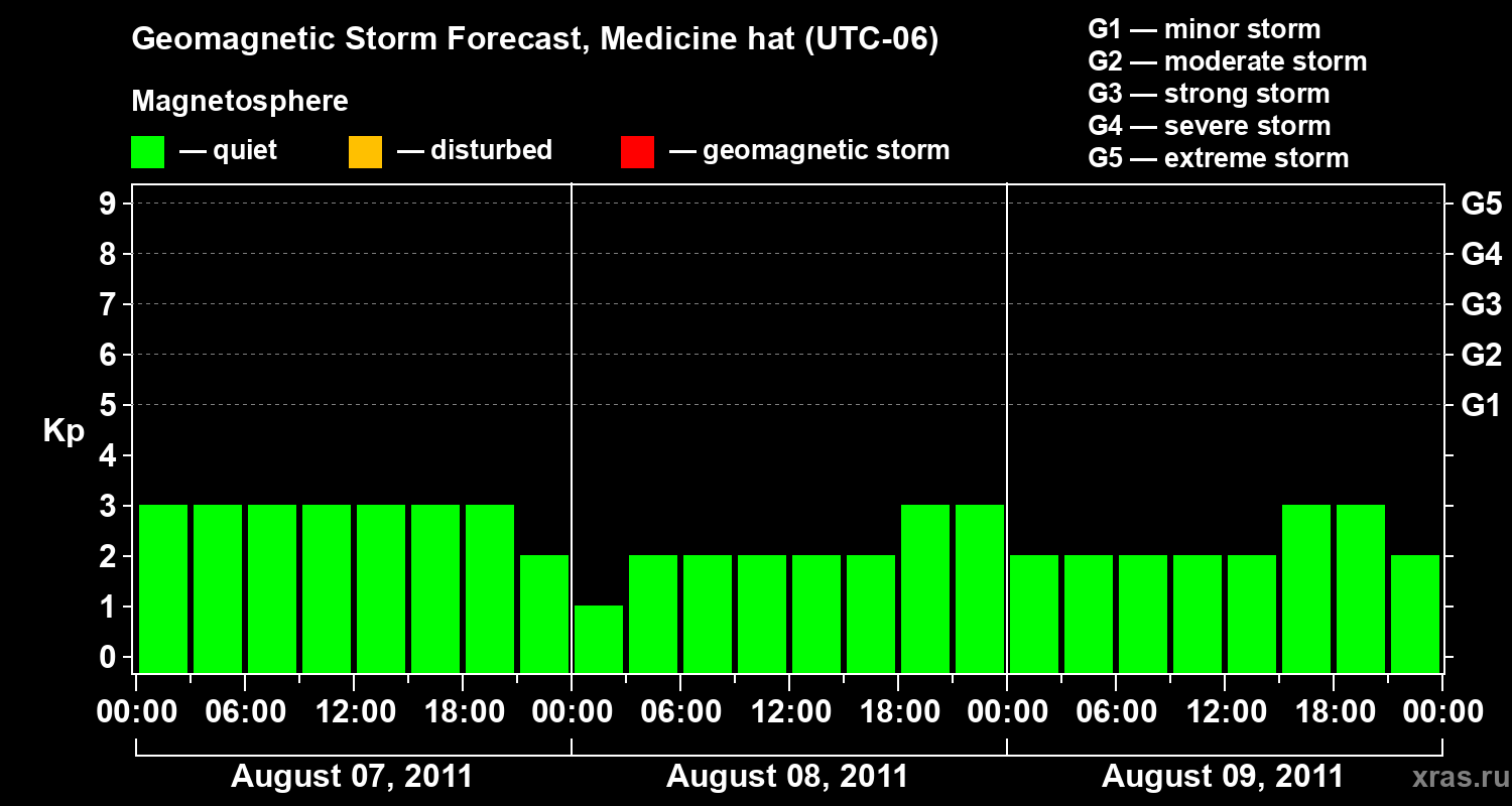 Geomagnetic storm forecast in Medicine hat for Aug 07, 2011
