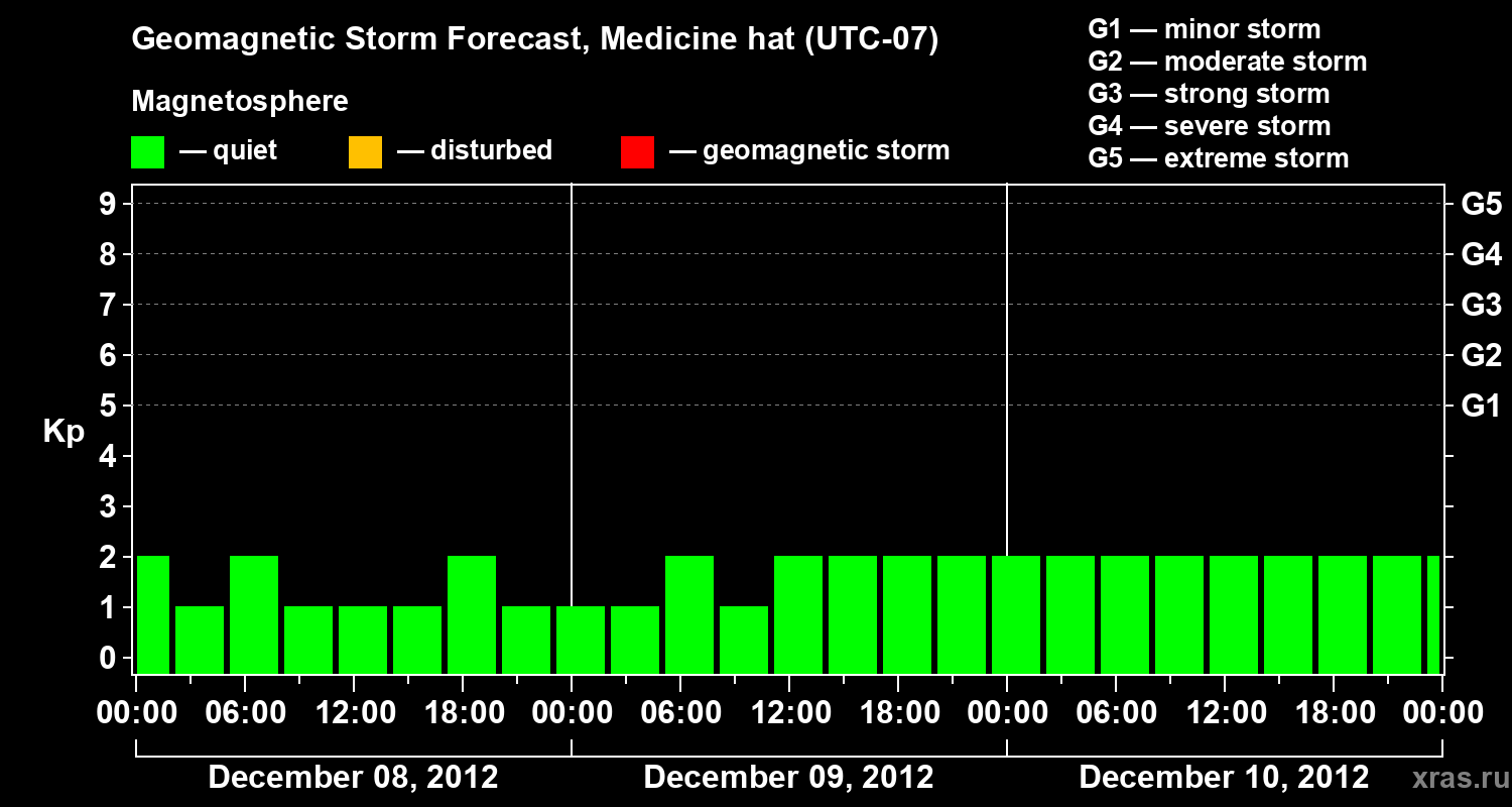 Geomagnetic storm forecast in Medicine hat for Dec 08, 2012