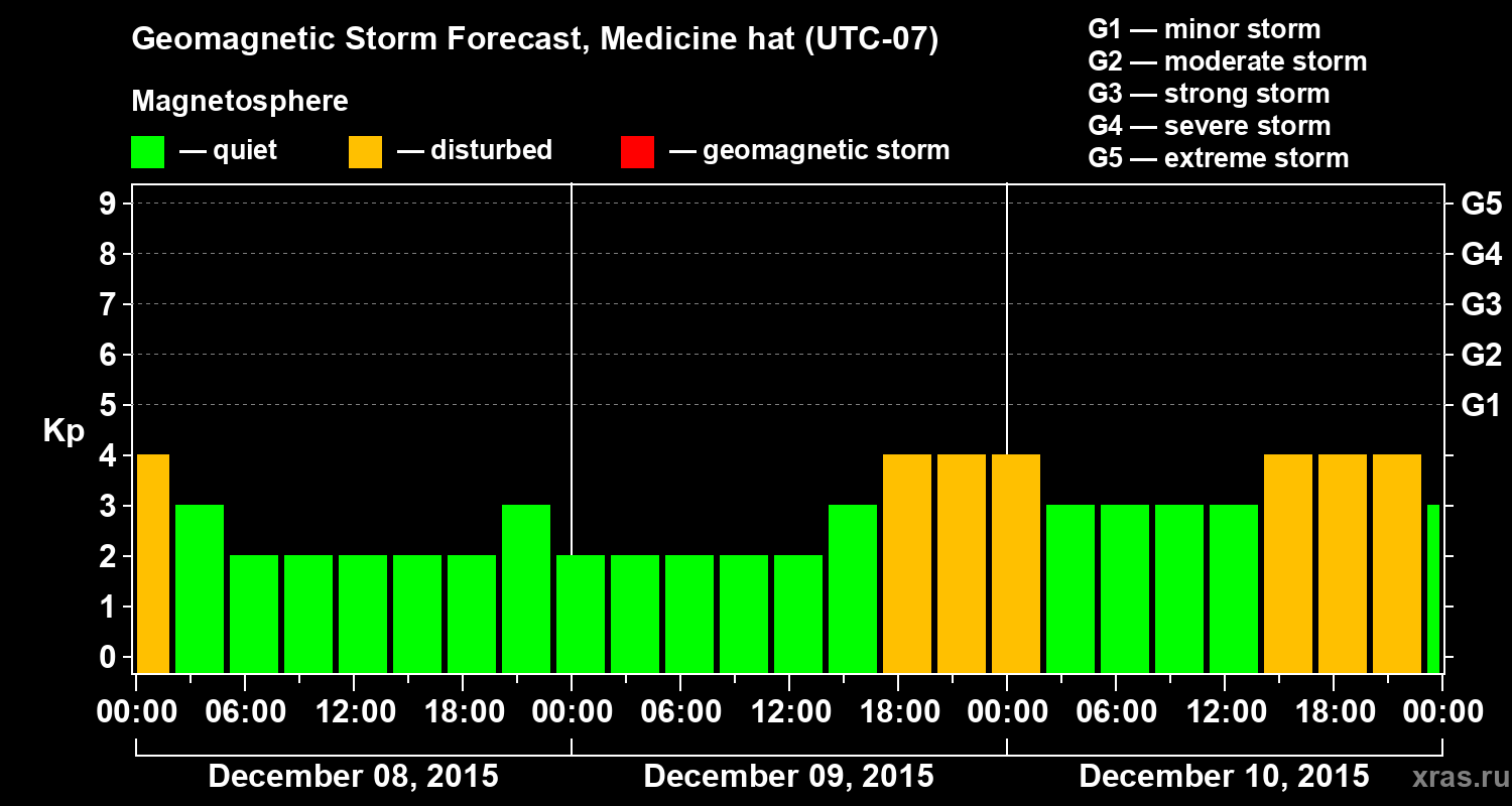 Geomagnetic storm forecast in Medicine hat for Dec 08, 2015