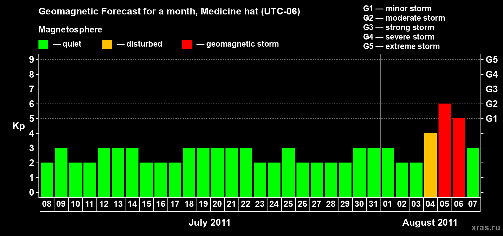 Geomagnetic storm forecast in Medicine hat for Jul 08, 2011