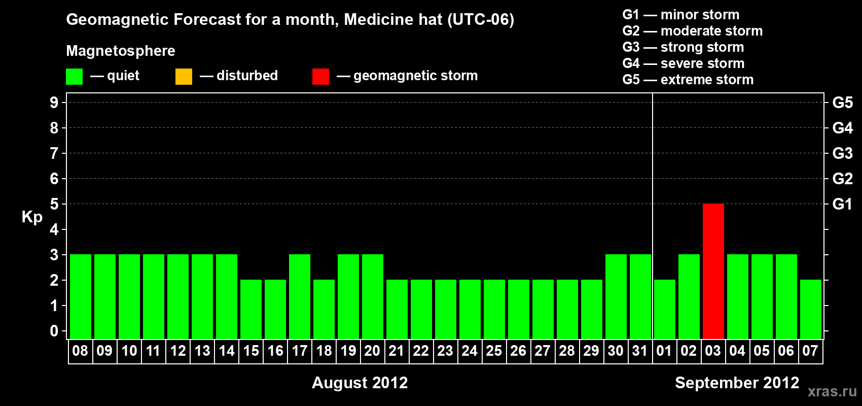 Geomagnetic storm forecast in Medicine hat for Aug 08, 2012