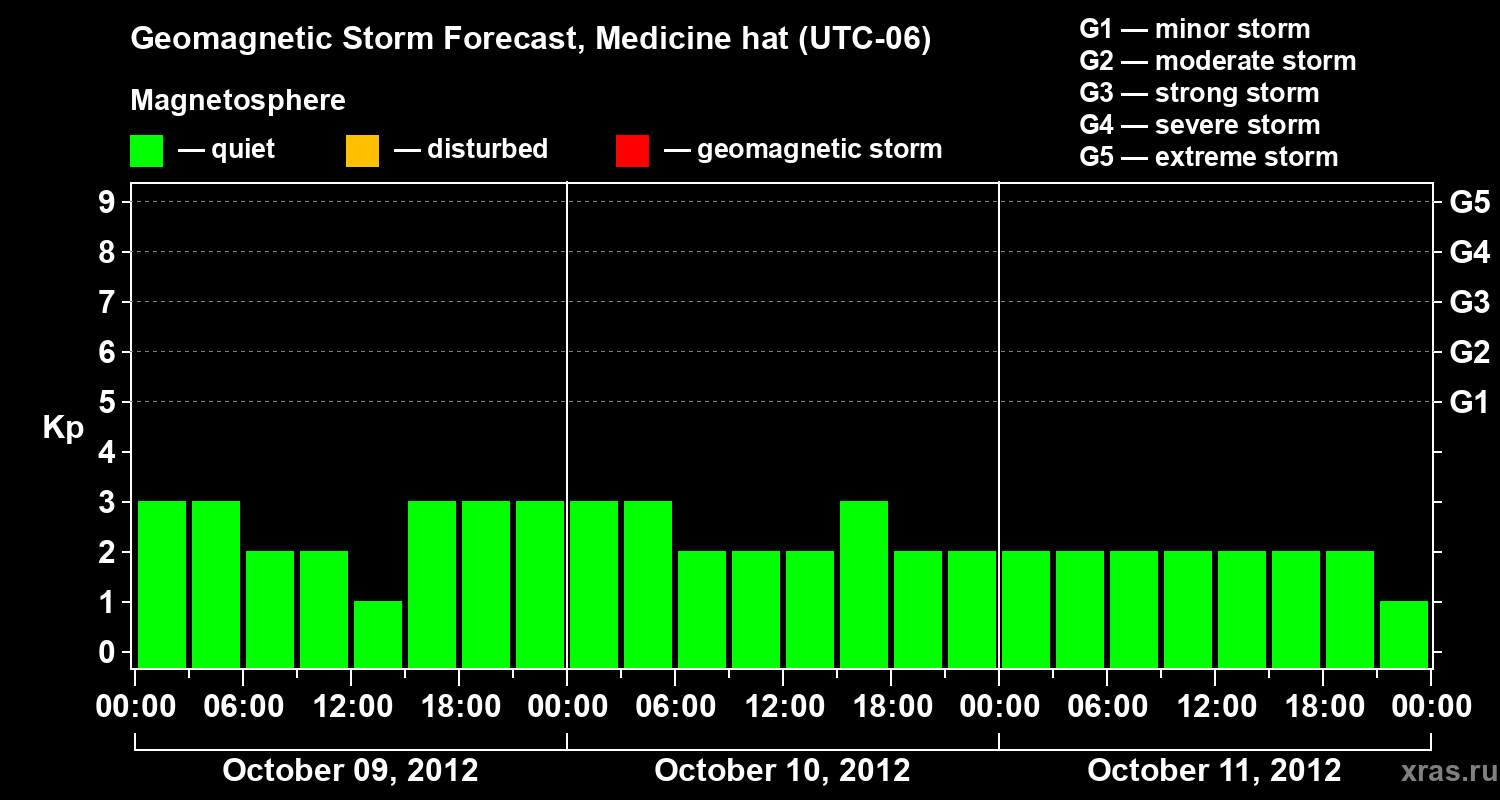 Geomagnetic storm forecast in Medicine hat for Oct 09, 2012