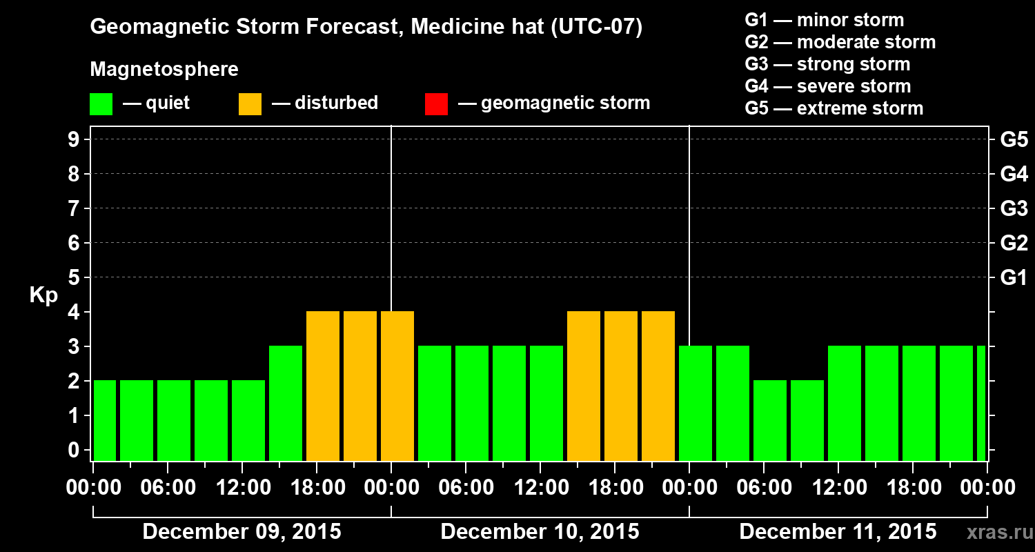 Geomagnetic storm forecast in Medicine hat for Dec 09, 2015