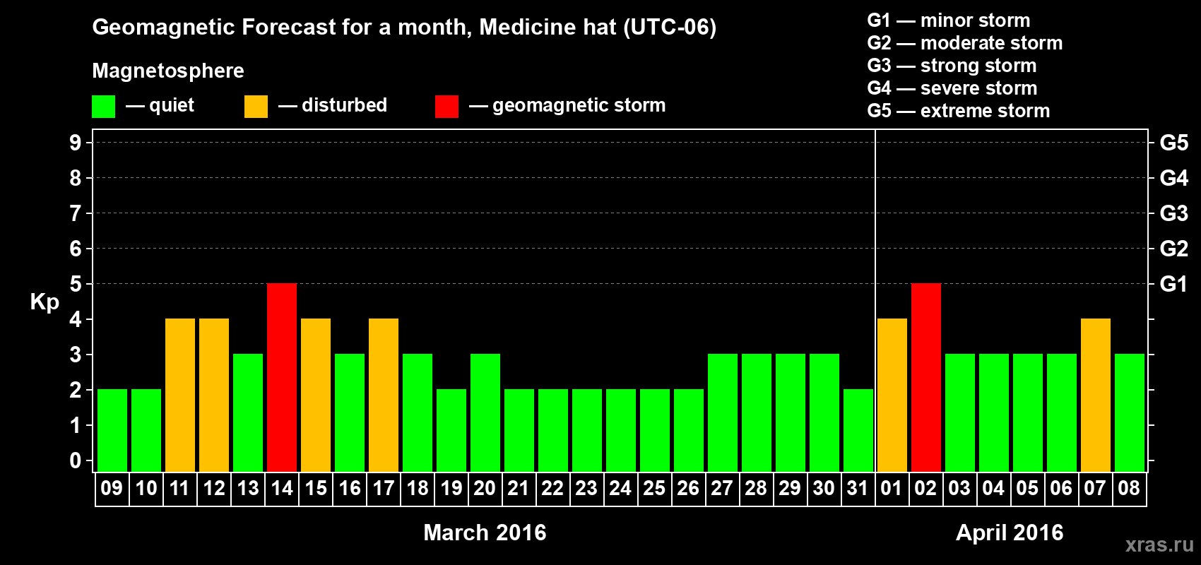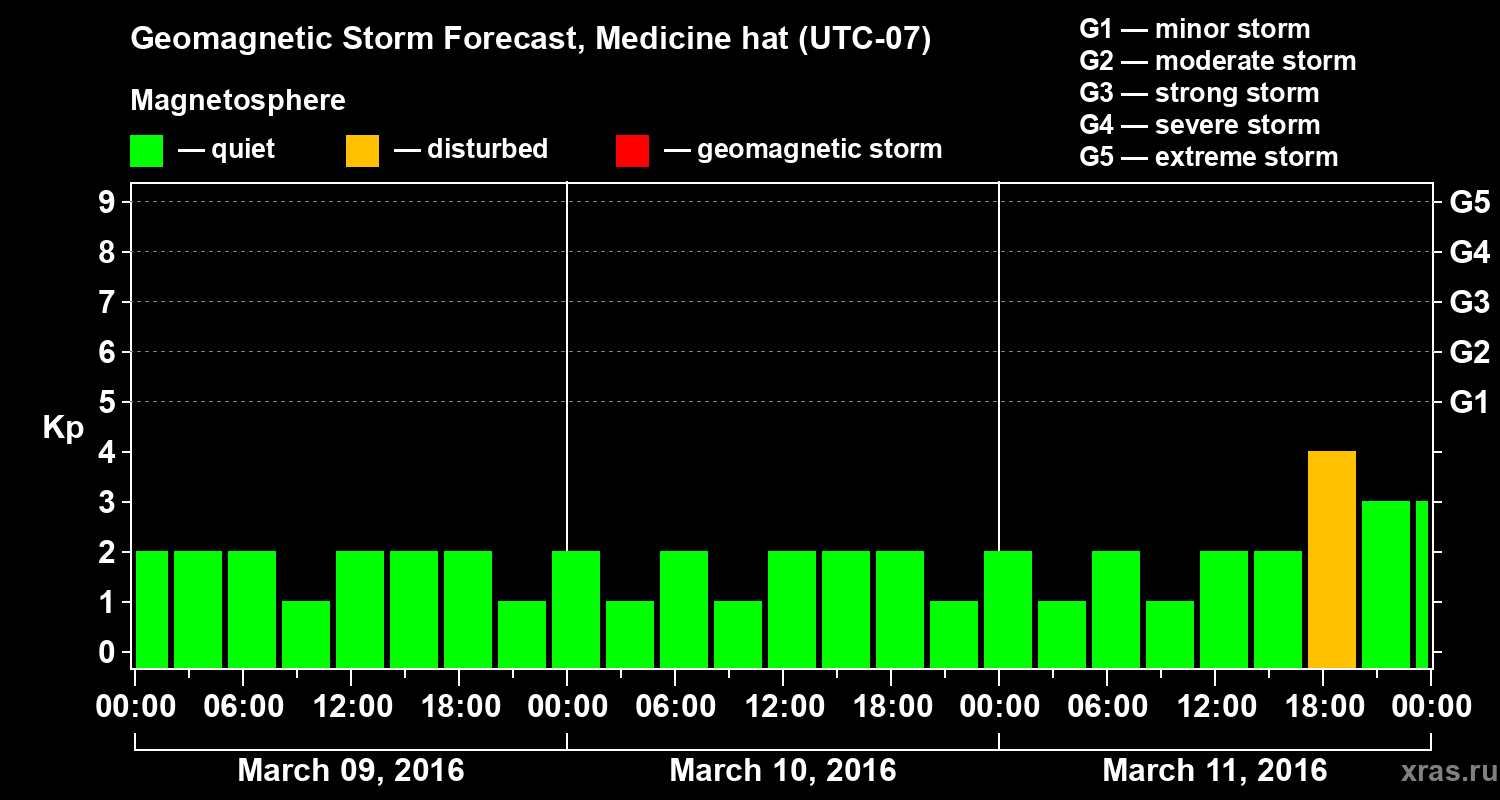 Geomagnetic storm forecast in Medicine hat for Mar 09, 2016