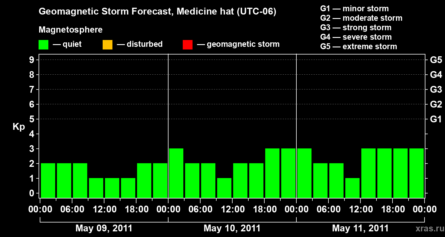 Geomagnetic storm forecast in Medicine hat for May 09, 2011