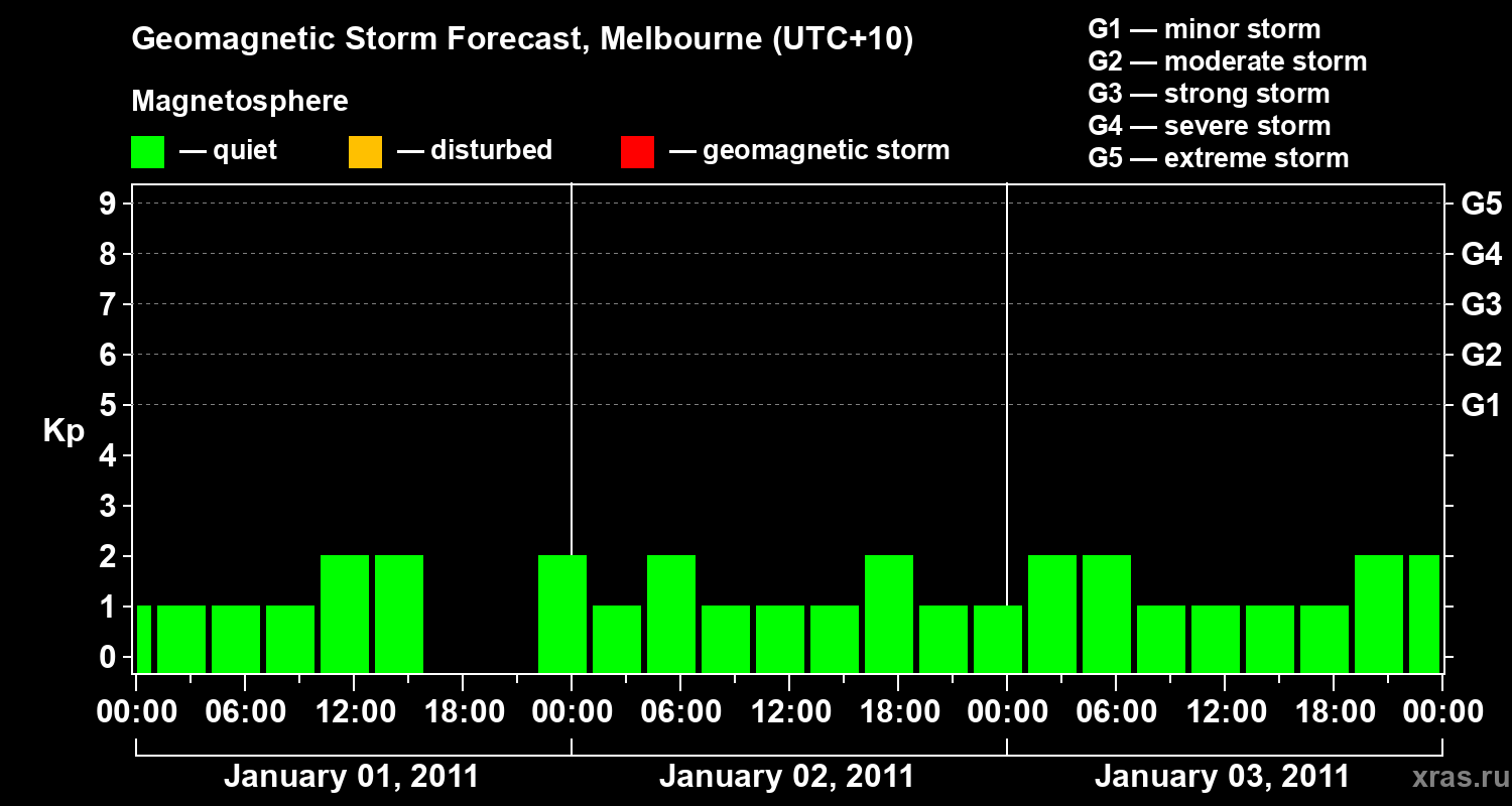 Geomagnetic storm forecast in Melbourne for Jan 01, 2011