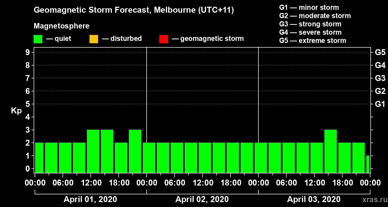 Geomagnetic activity forecast in Melbourne — Apr 01, 2020