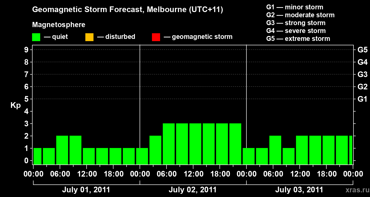 Geomagnetic storm forecast in Melbourne for Jul 01, 2011