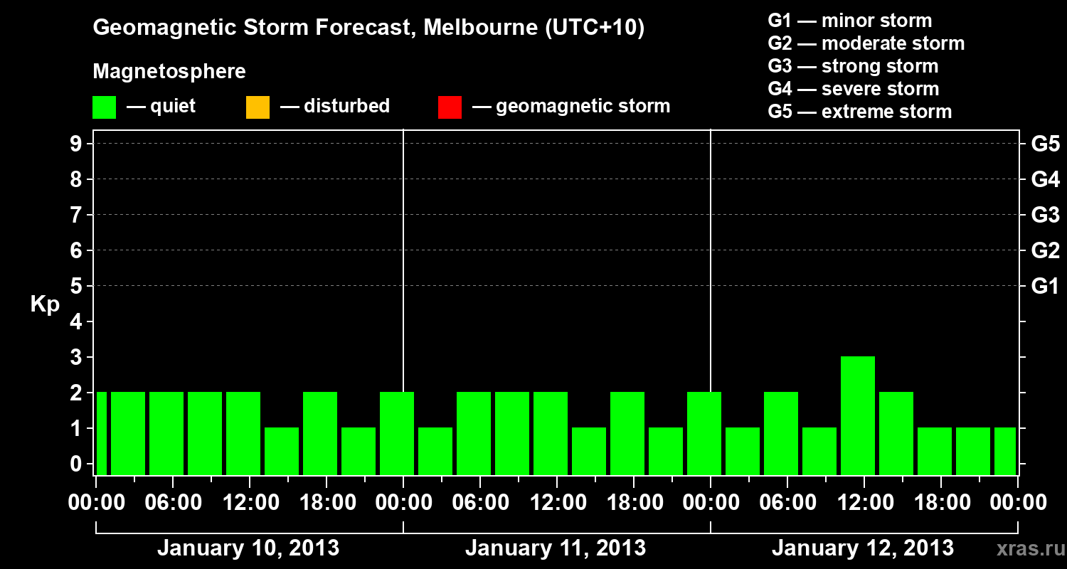 Geomagnetic storm forecast in Melbourne for Jan 10, 2013