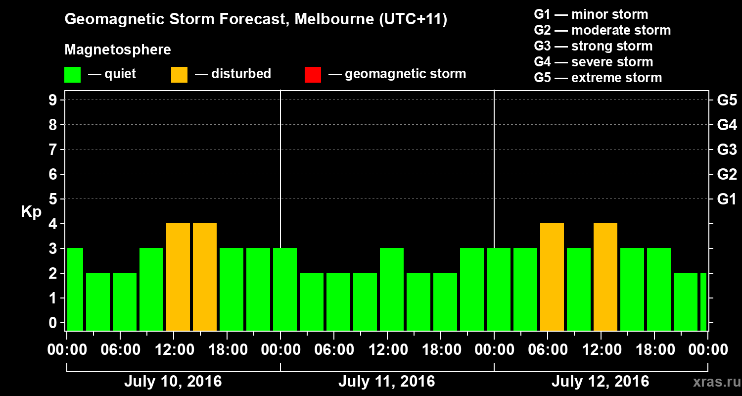 Geomagnetic storm forecast in Melbourne for Jul 10, 2016