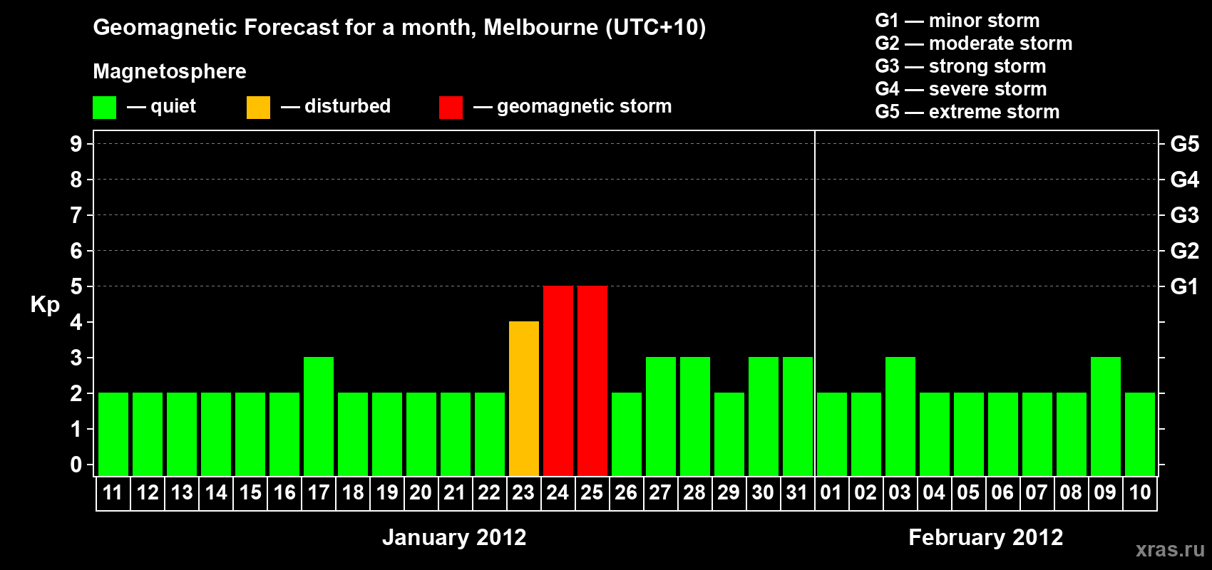 Geomagnetic activity forecast in Melbourne — Jan 11, 2012
