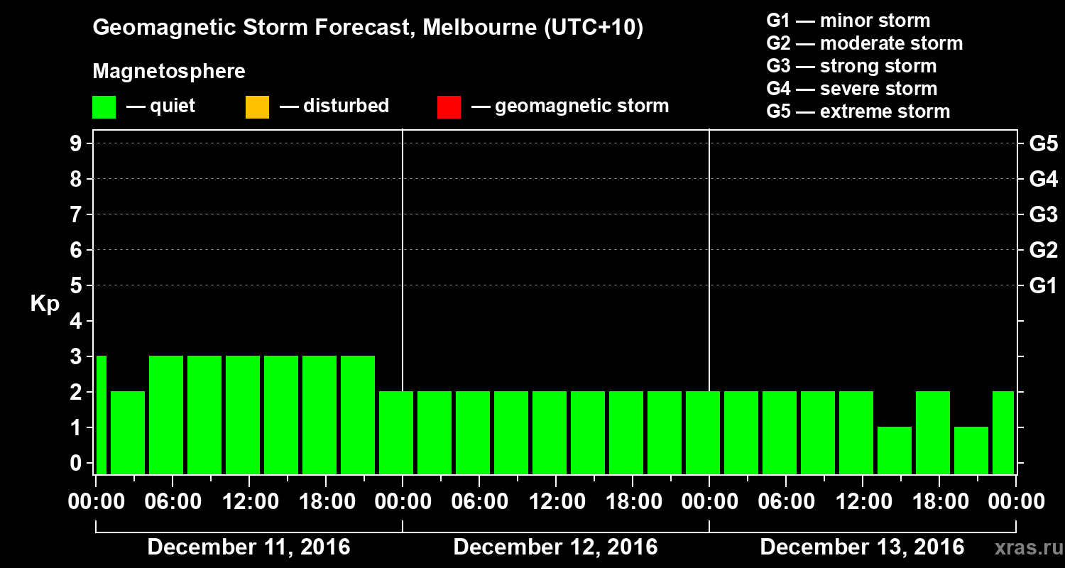 Geomagnetic storm forecast in Melbourne for Dec 11, 2016