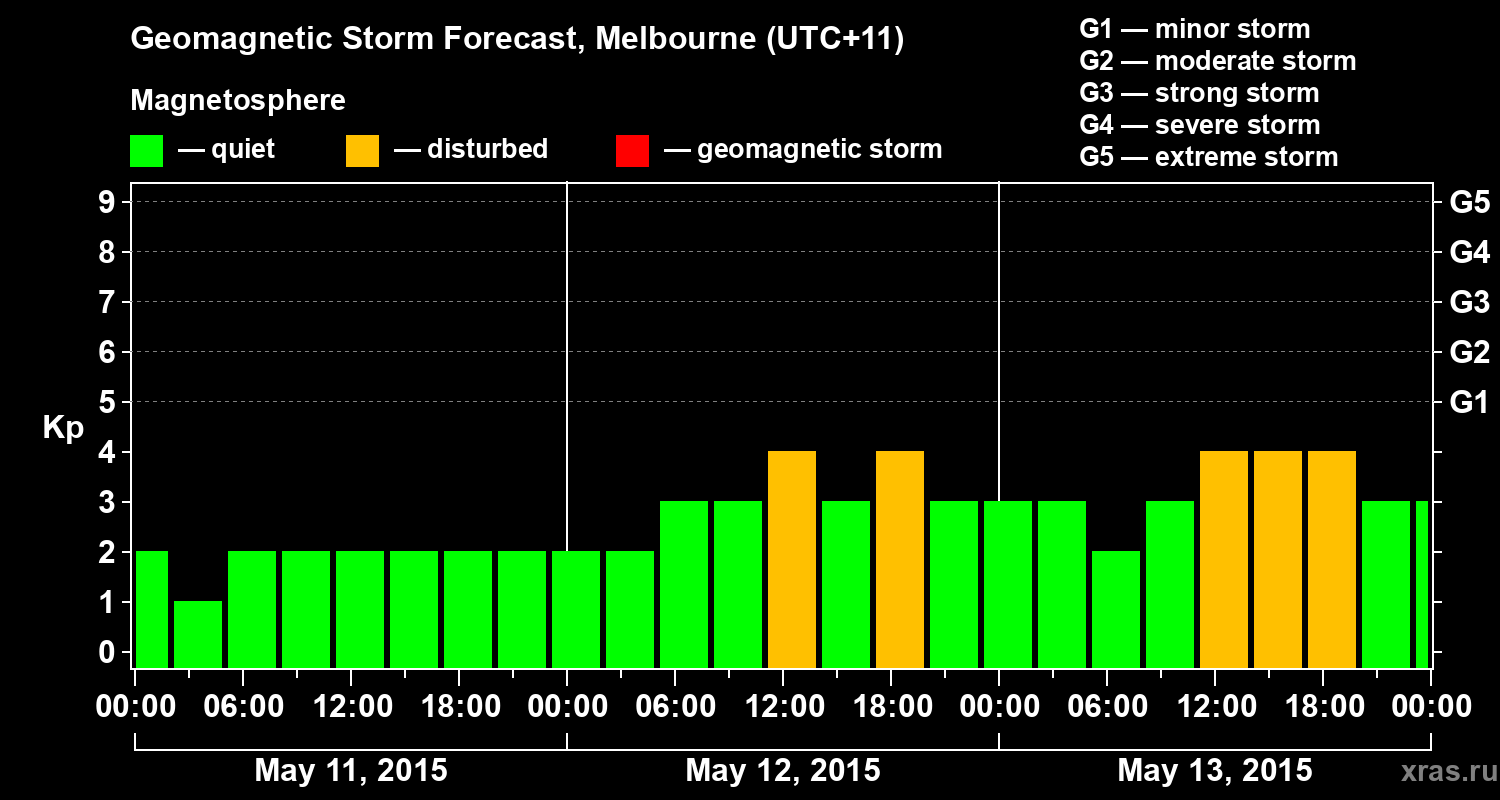 Geomagnetic storm forecast in Melbourne for May 11, 2015