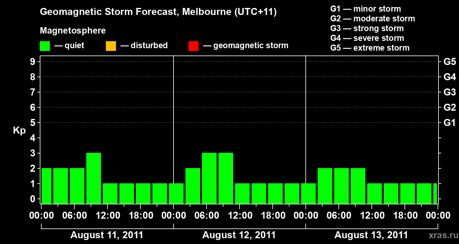 Geomagnetic storm forecast in Melbourne for Aug 11, 2011