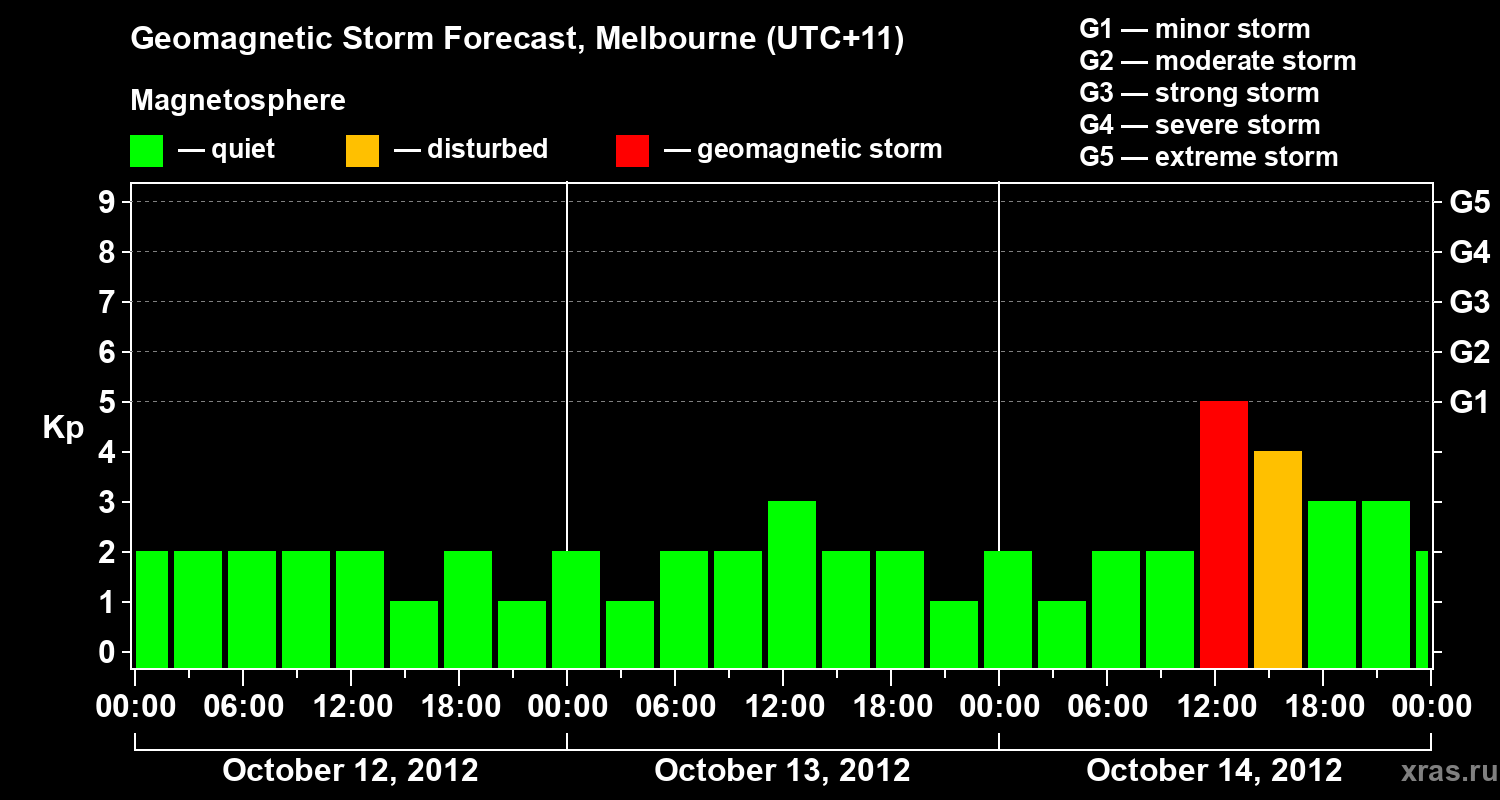 Geomagnetic storm forecast in Melbourne for Oct 12, 2012