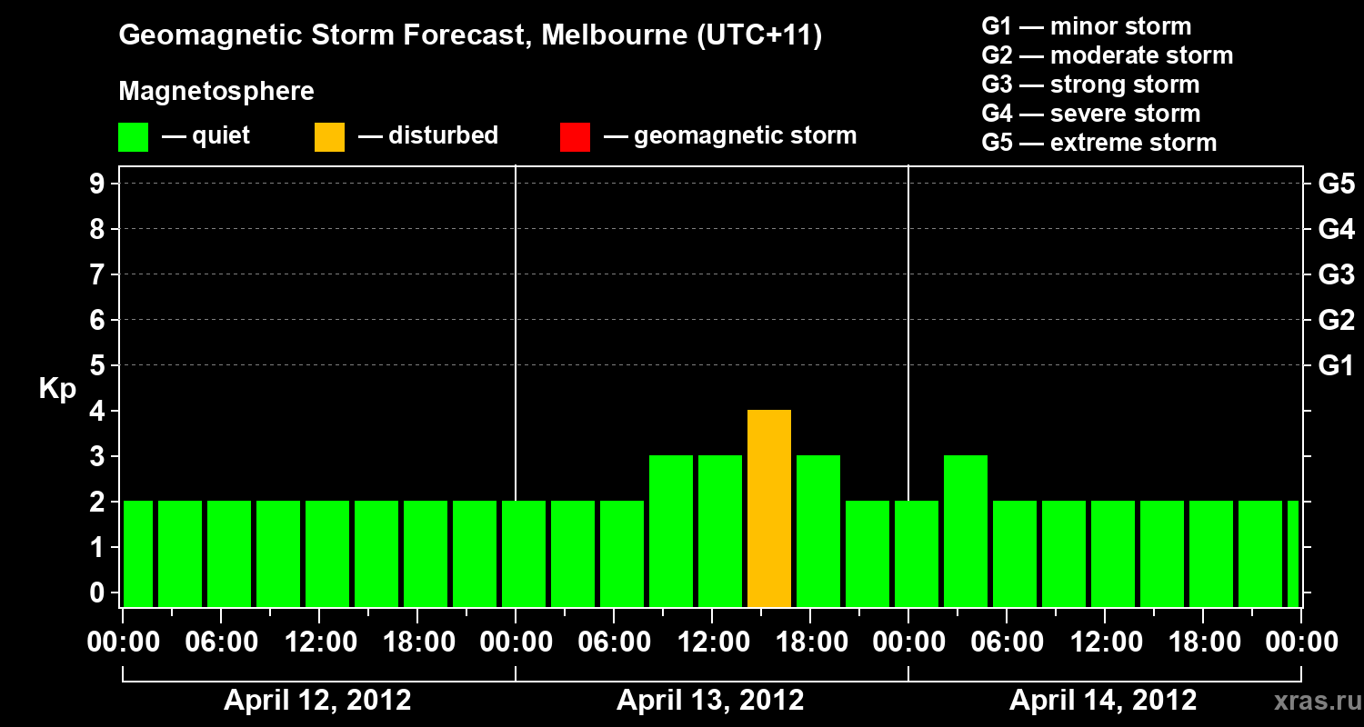 Geomagnetic storm forecast in Melbourne for Apr 12, 2012
