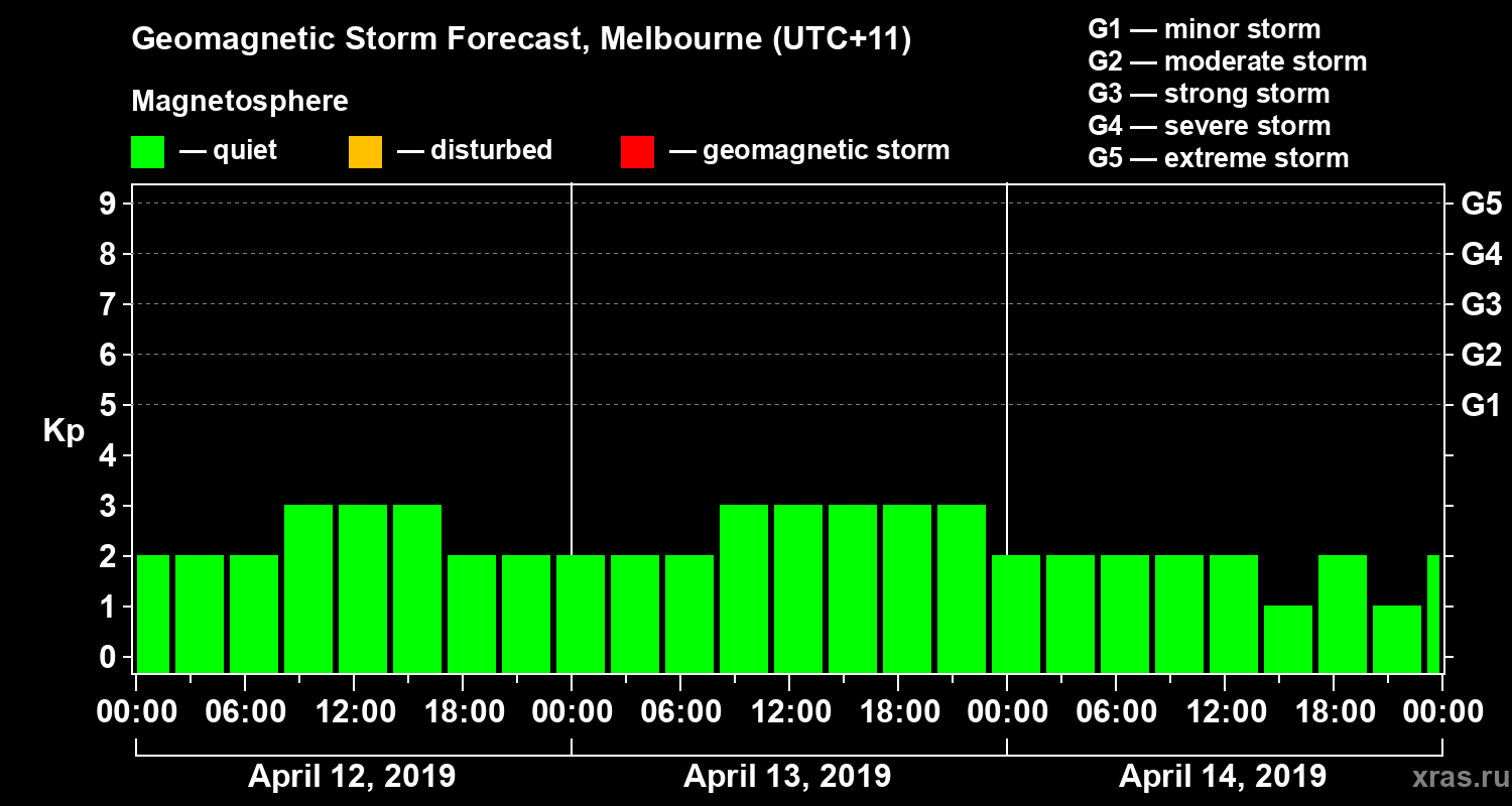 Geomagnetic activity forecast in Melbourne — Apr 12, 2019