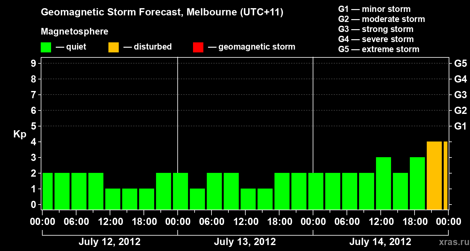 Geomagnetic storm forecast in Melbourne for Jul 12, 2012
