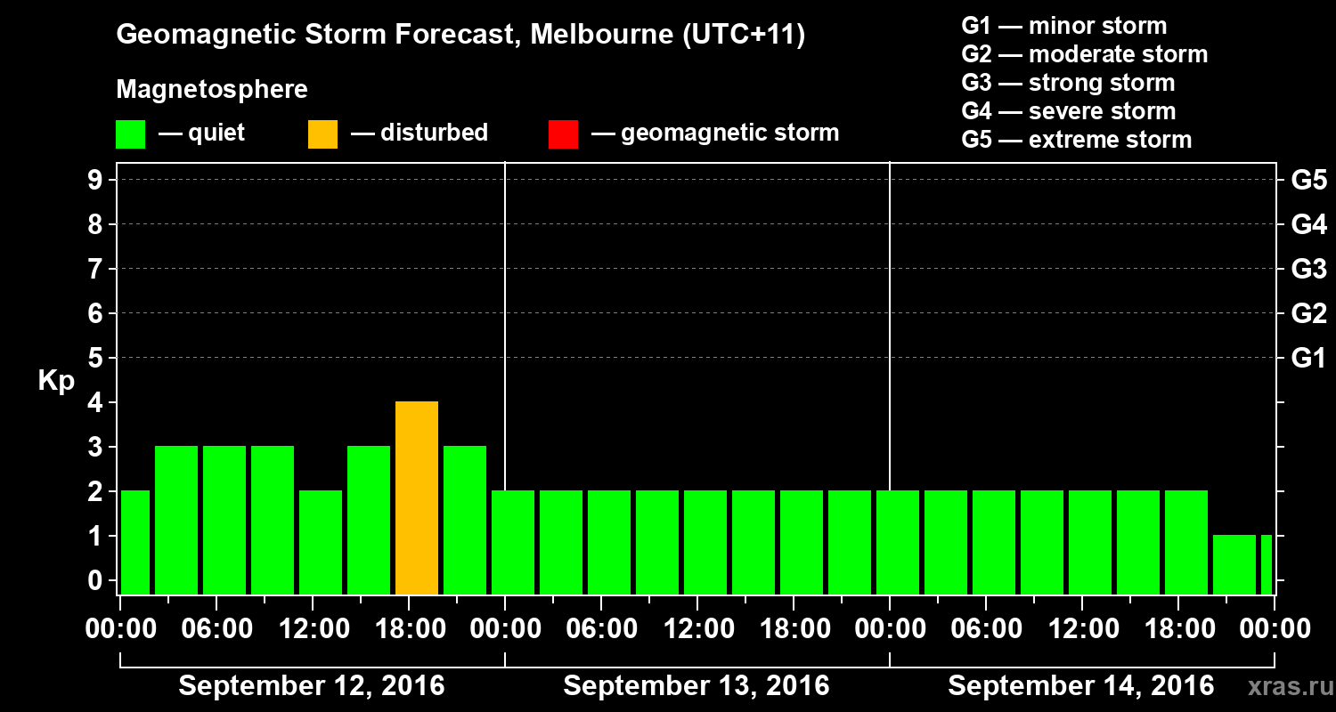 Geomagnetic activity forecast in Melbourne — Sep 12, 2016