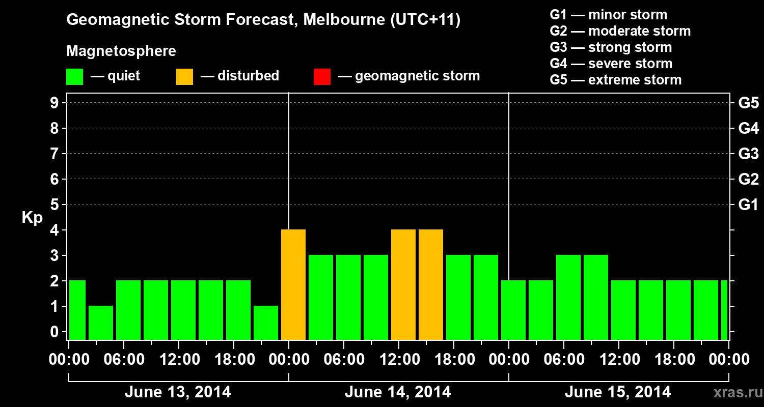 Geomagnetic storm forecast in Melbourne for Jun 13, 2014