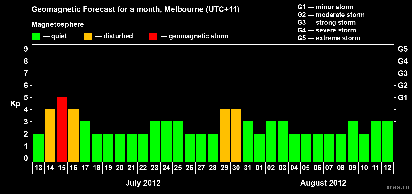 Geomagnetic storm forecast in Melbourne for Jul 13, 2012