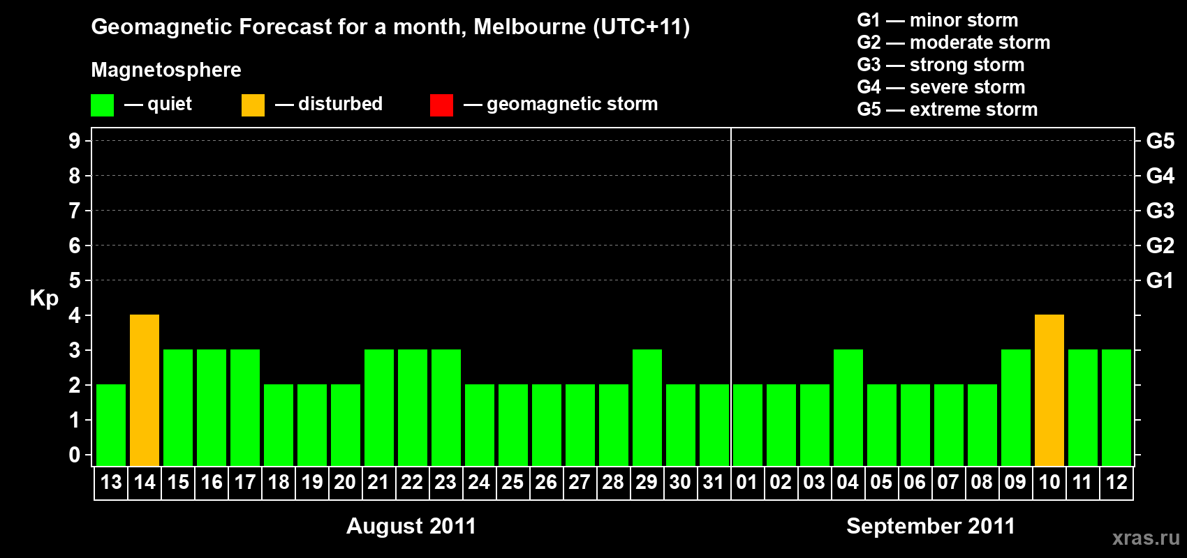 Geomagnetic storm forecast in Melbourne for Aug 13, 2011