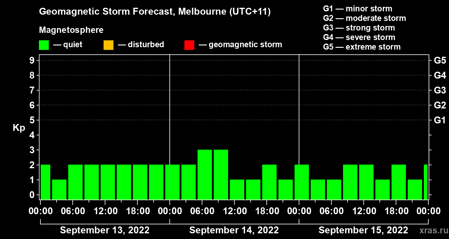 Geomagnetic activity forecast in Melbourne — Sep 13, 2022