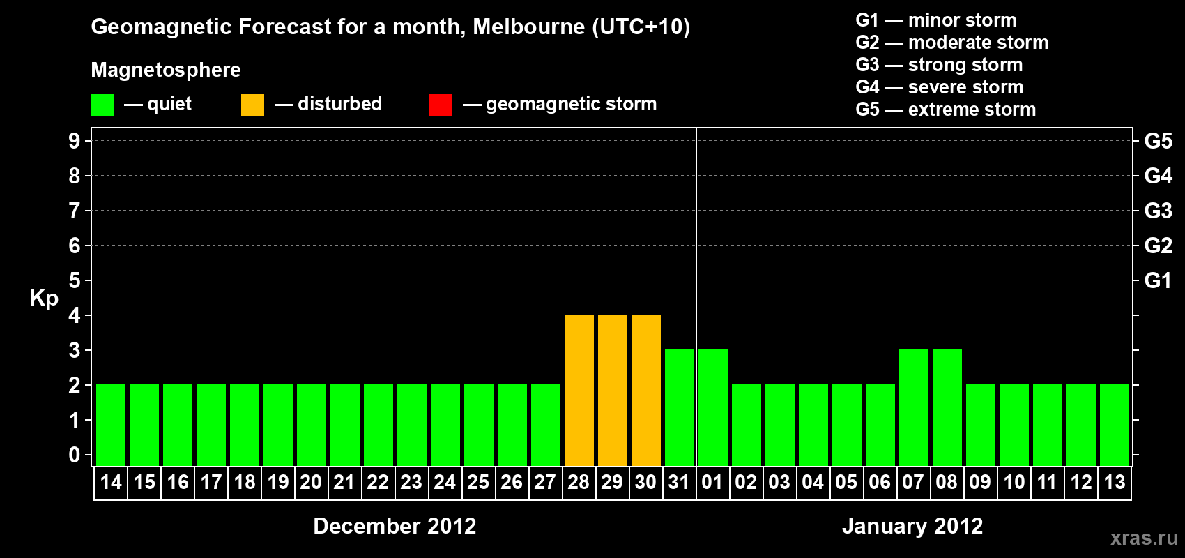 Geomagnetic storm forecast in Melbourne for Dec 14, 2011