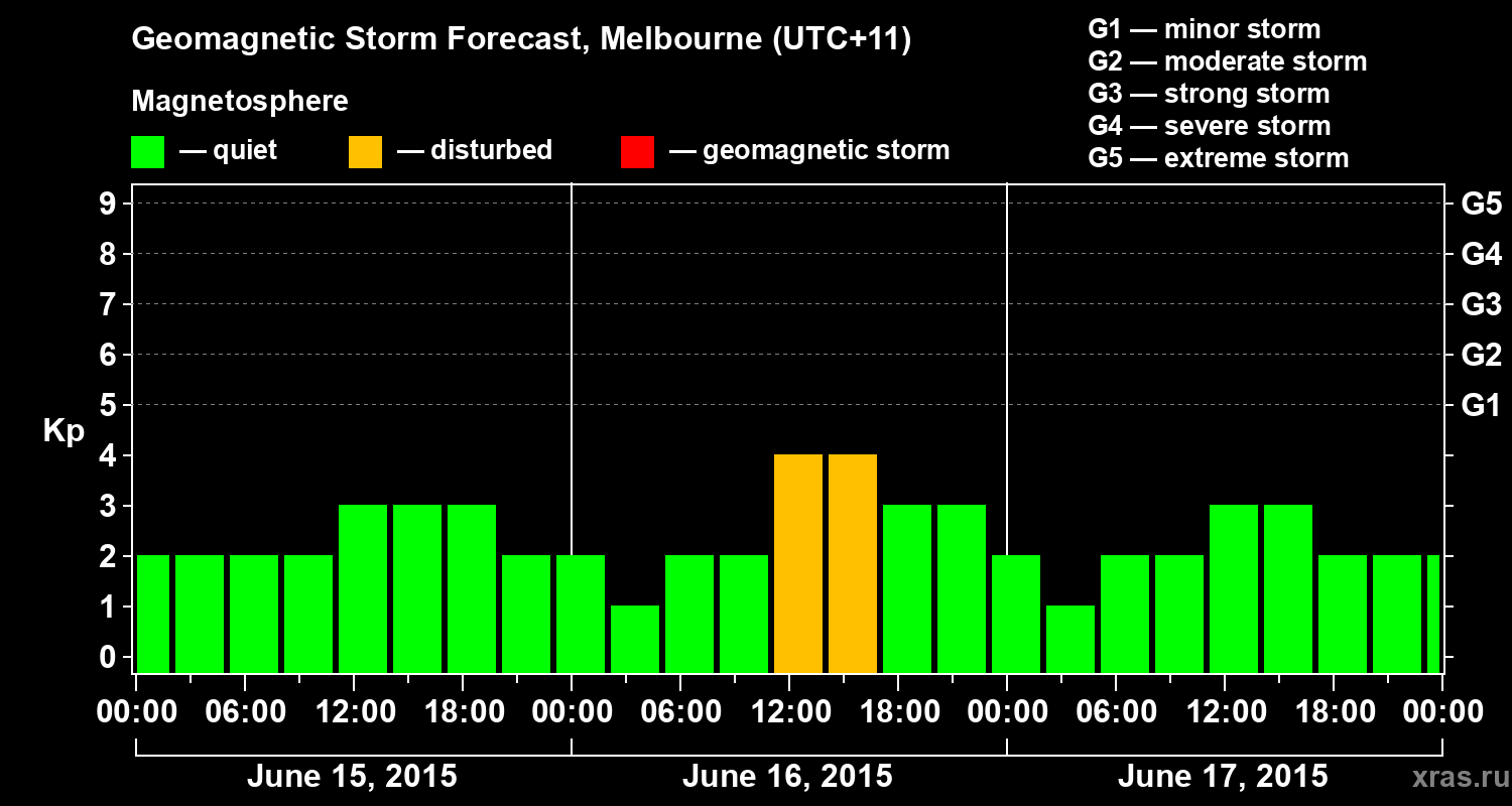 Geomagnetic storm forecast in Melbourne for Jun 15, 2015