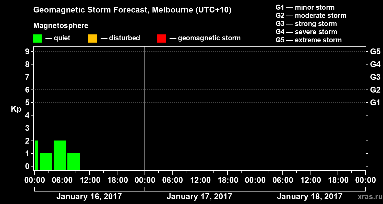 Geomagnetic activity forecast in Melbourne — Jan 16, 2017