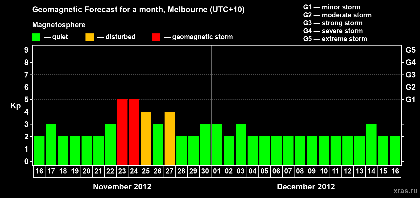 Geomagnetic activity forecast in Melbourne — Nov 16, 2012