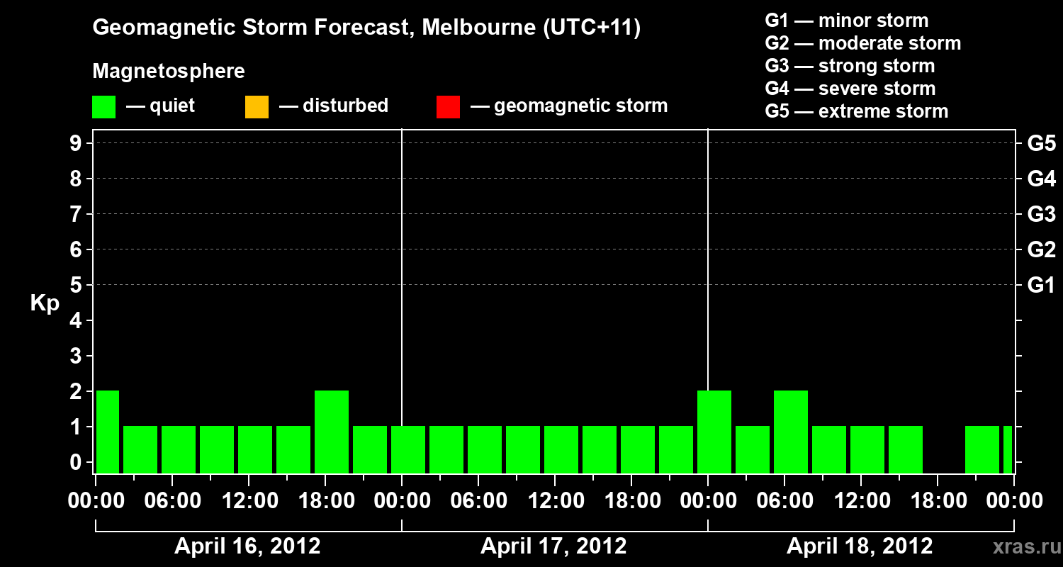 Geomagnetic storm forecast in Melbourne for Apr 16, 2012
