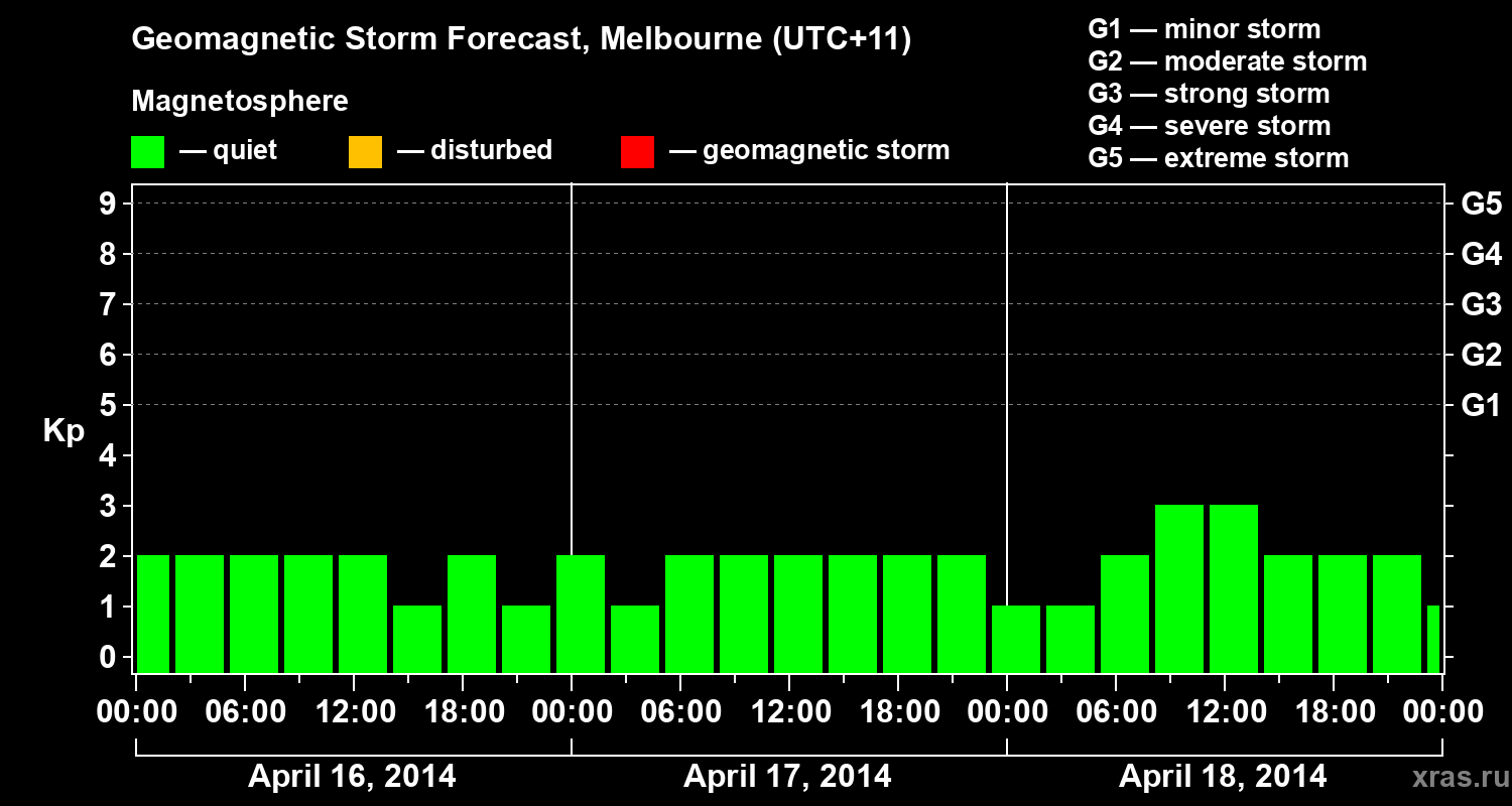 Geomagnetic storm forecast in Melbourne for Apr 16, 2014