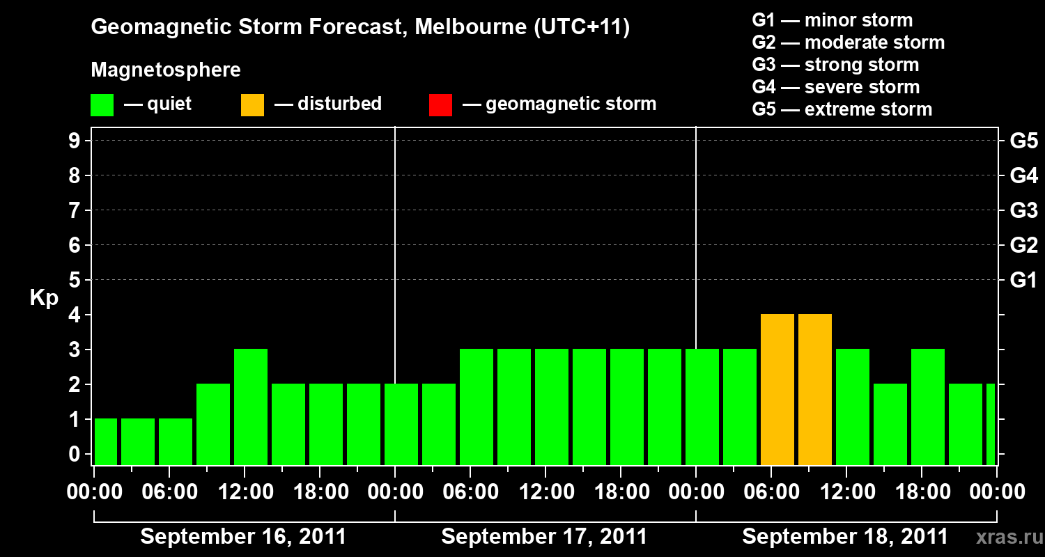Geomagnetic storm forecast in Melbourne for Sep 16, 2011