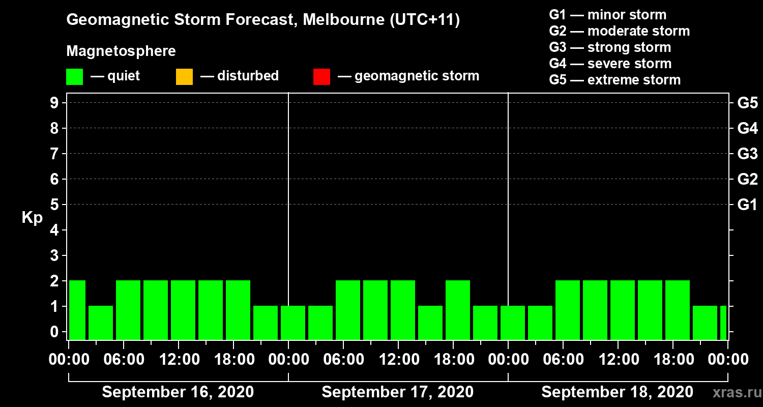 Geomagnetic activity forecast in Melbourne — Sep 16, 2020