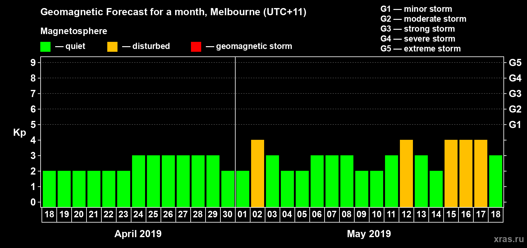 Geomagnetic activity forecast in Melbourne — Apr 18, 2019