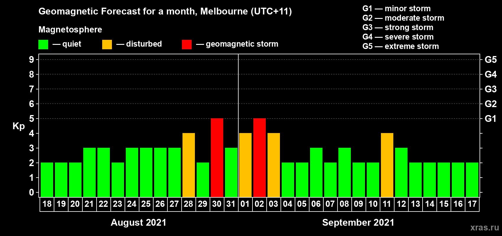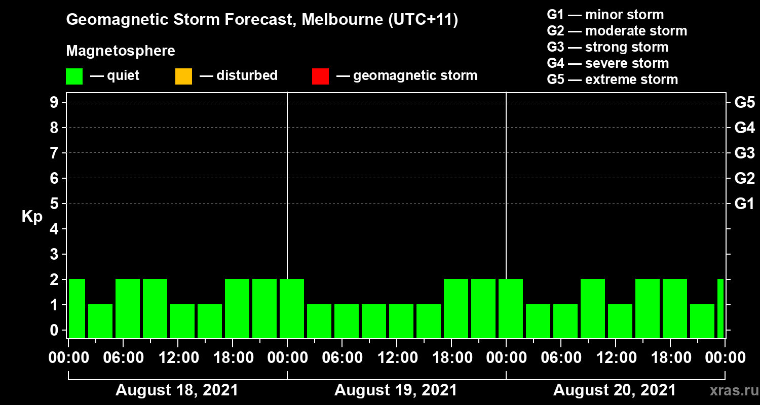 Geomagnetic activity forecast in Melbourne — Aug 18, 2021