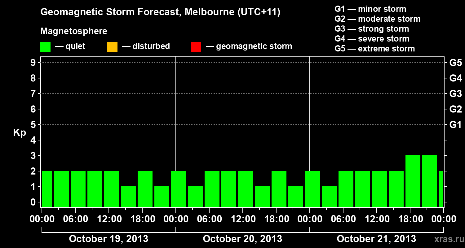 Geomagnetic storm forecast in Melbourne for Oct 19, 2013