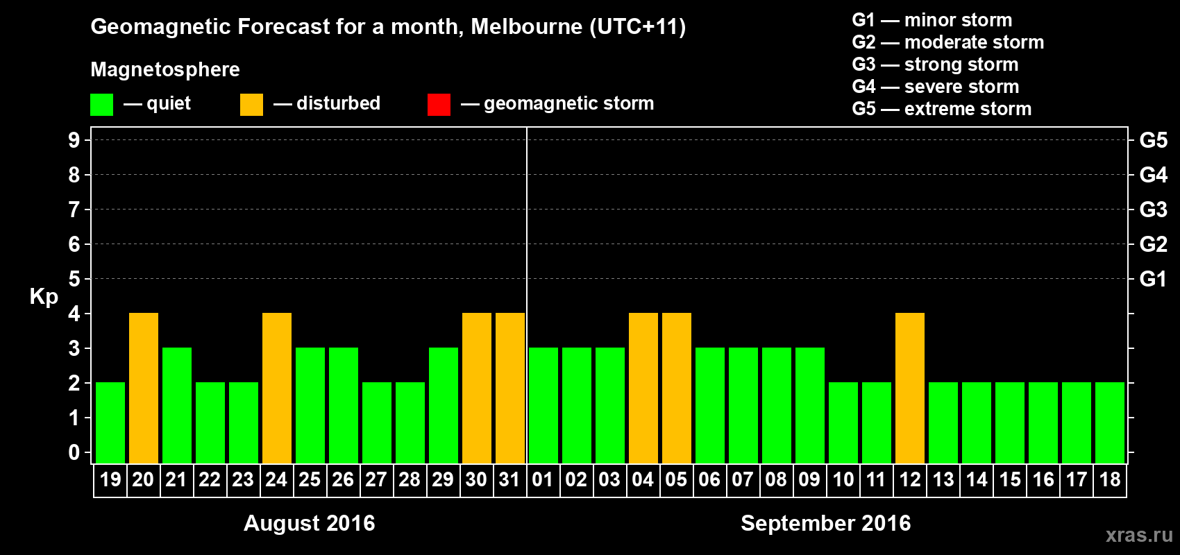 Geomagnetic activity forecast in Melbourne — Aug 19, 2016