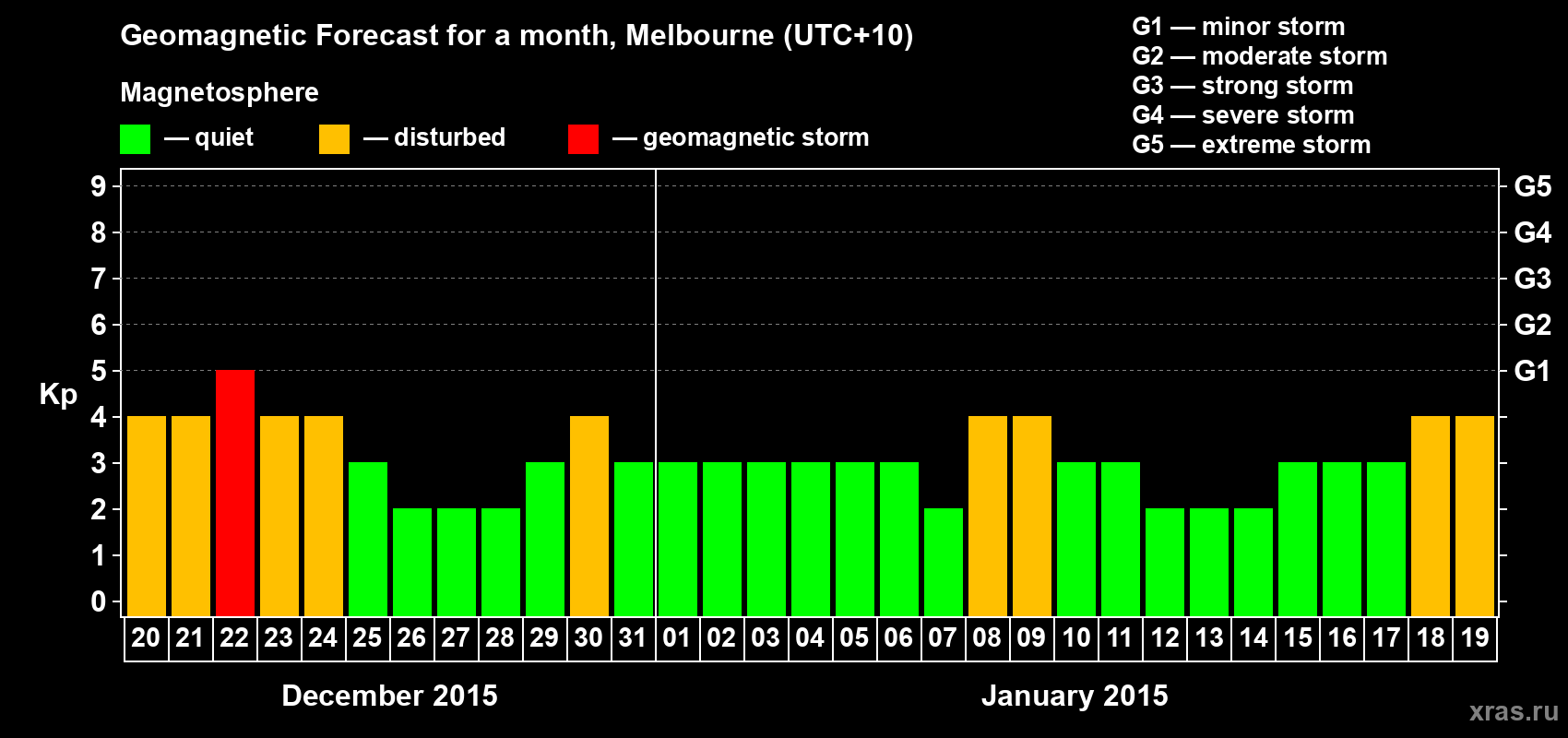Geomagnetic storm forecast in Melbourne for Dec 20, 2014