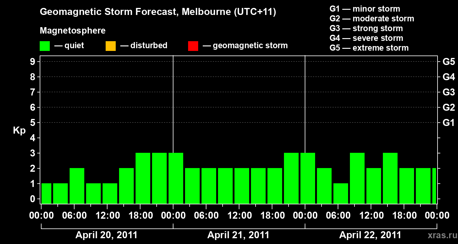 Geomagnetic storm forecast in Melbourne for Apr 20, 2011