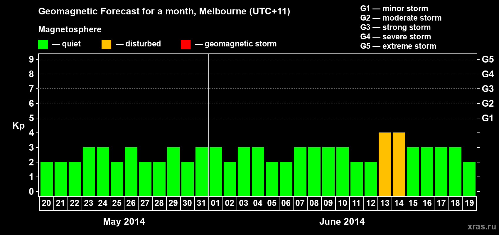 Geomagnetic storm forecast in Melbourne for May 20, 2014
