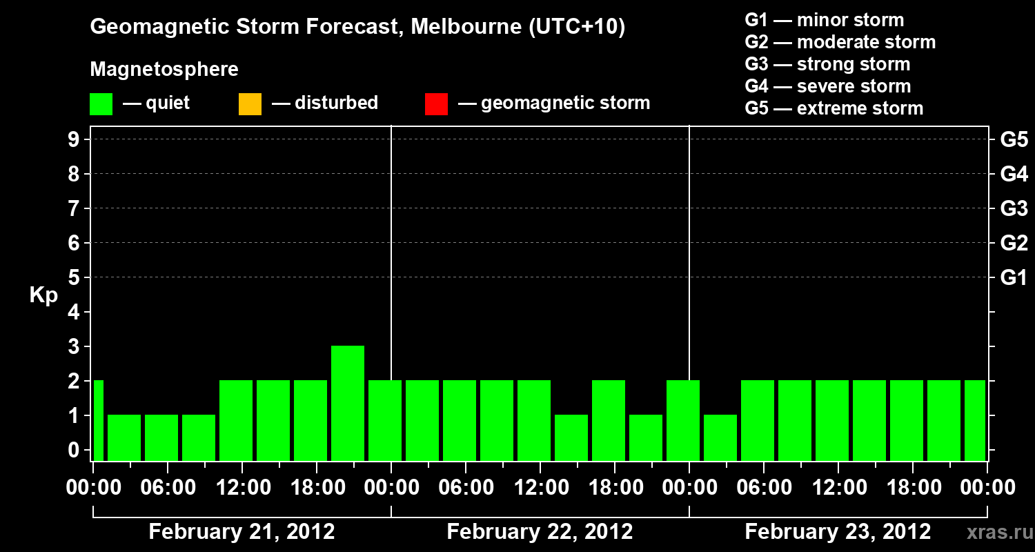 Geomagnetic storm forecast in Melbourne for Feb 21, 2012