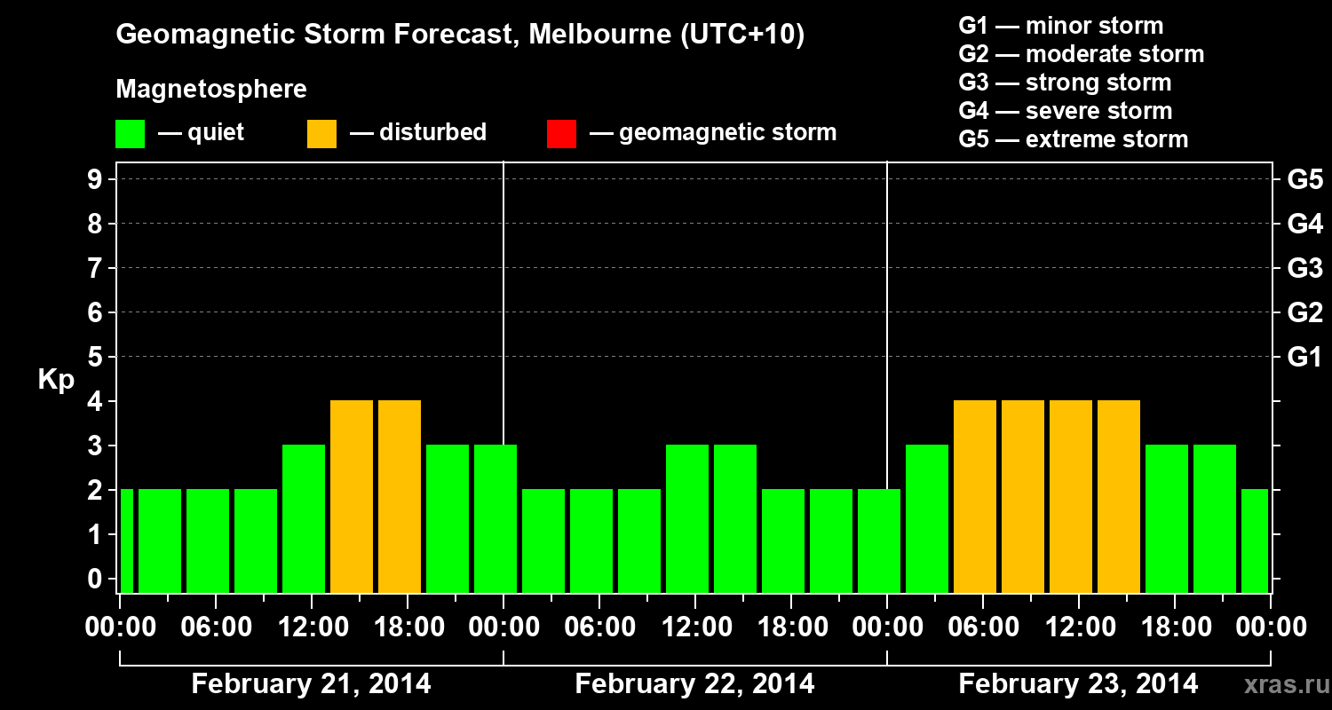 Geomagnetic storm forecast in Melbourne for Feb 21, 2014