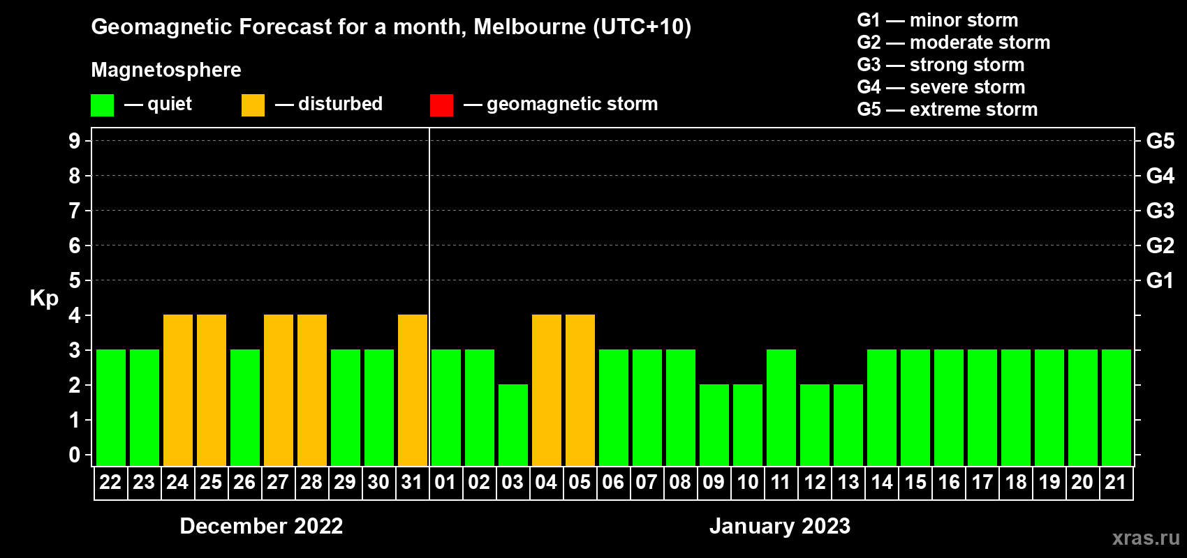 Geomagnetic activity forecast in Melbourne — Dec 22, 2022