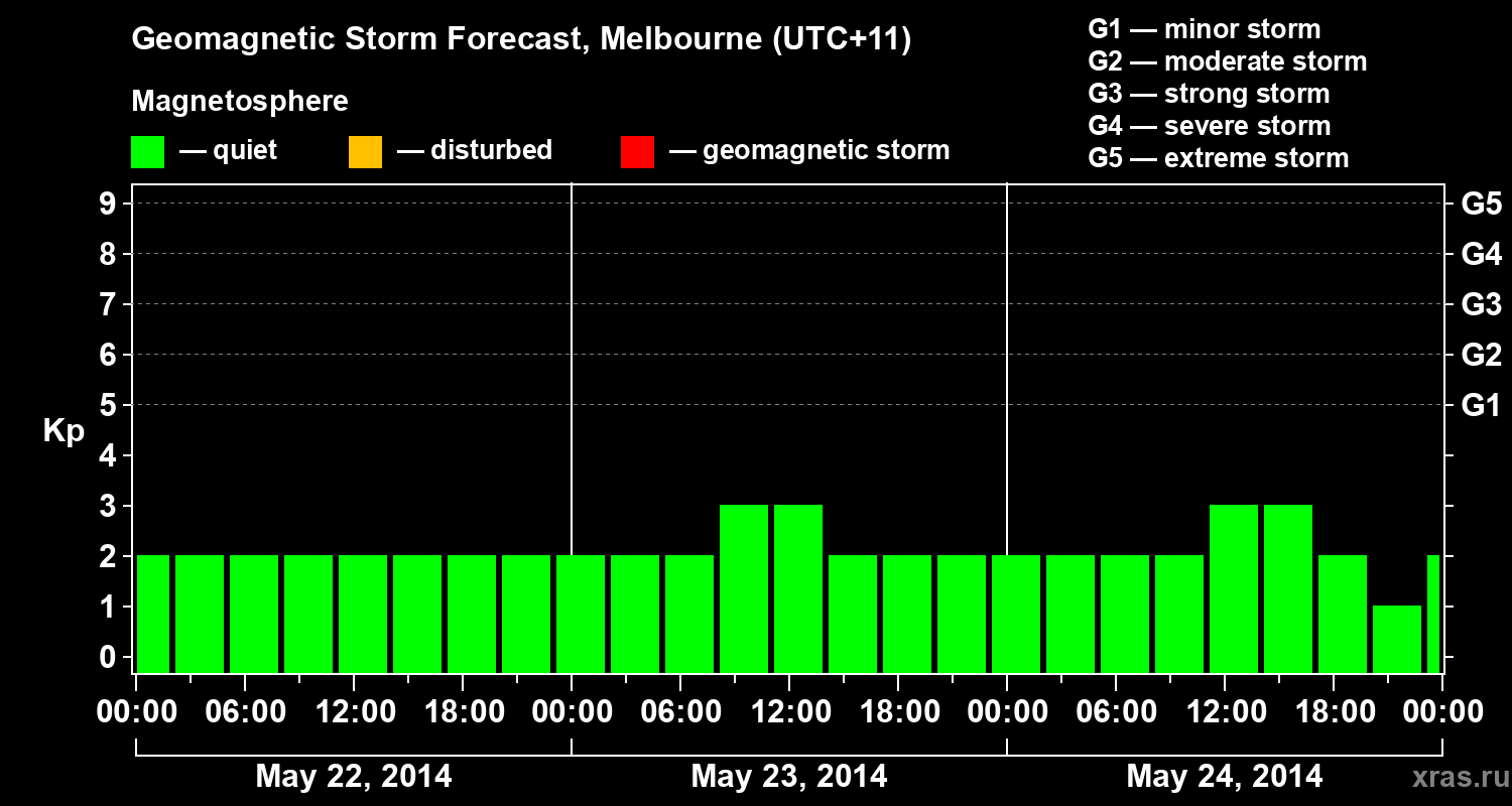 Geomagnetic activity forecast in Melbourne — May 22, 2014
