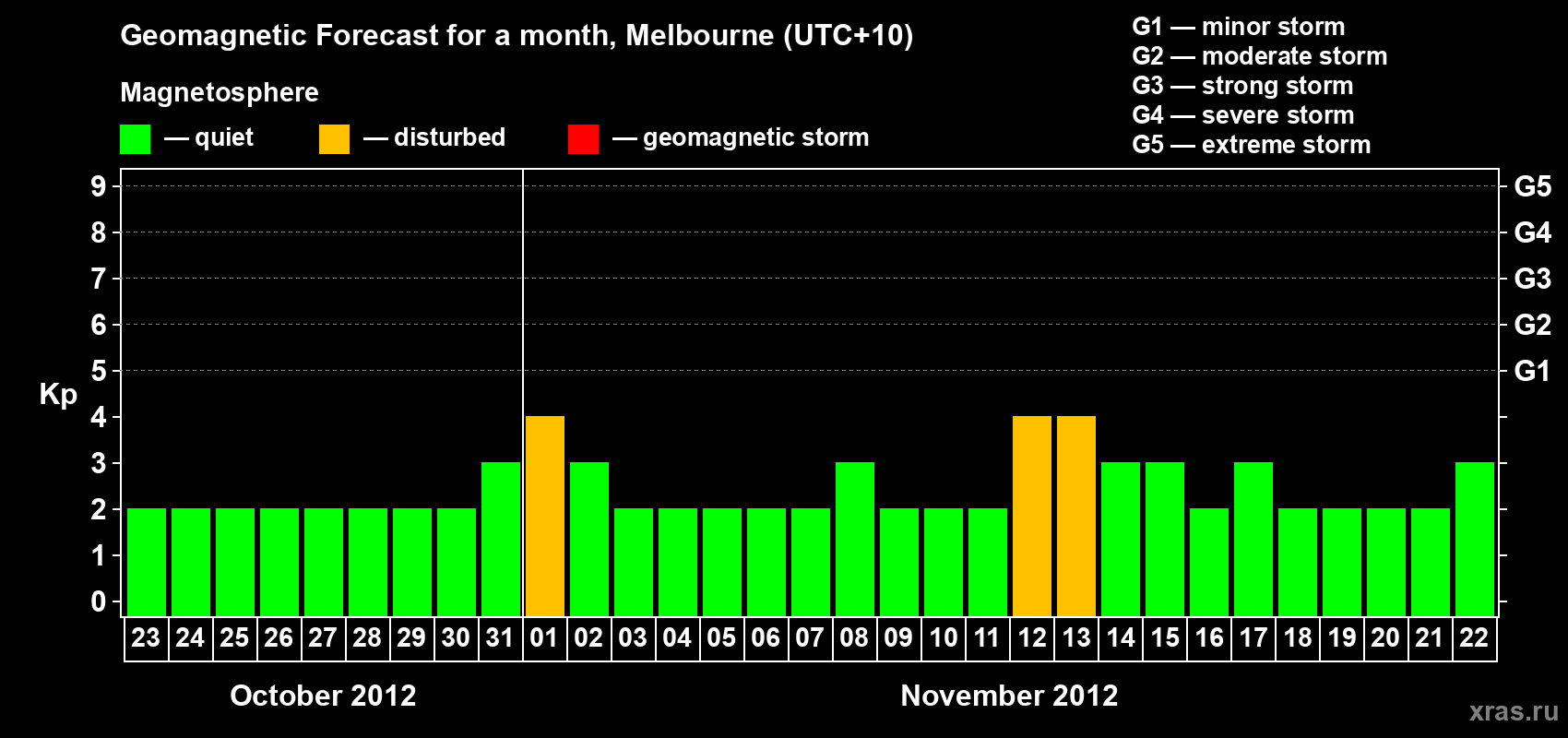 Geomagnetic storm forecast in Melbourne for Oct 23, 2012